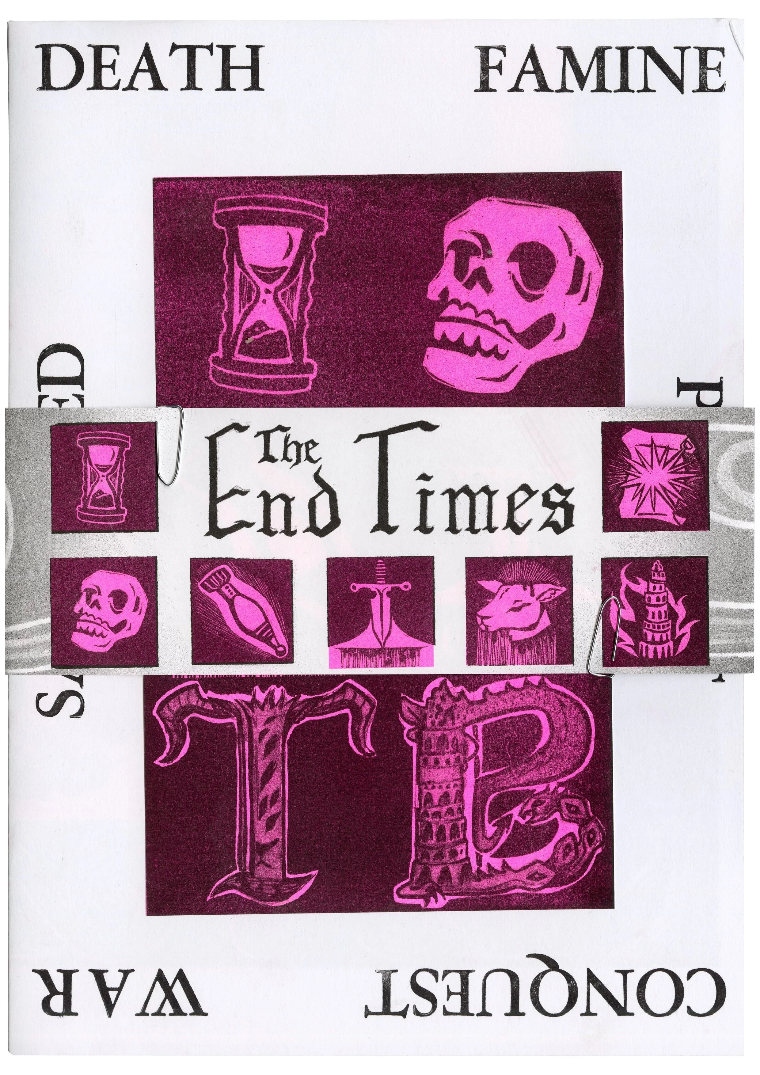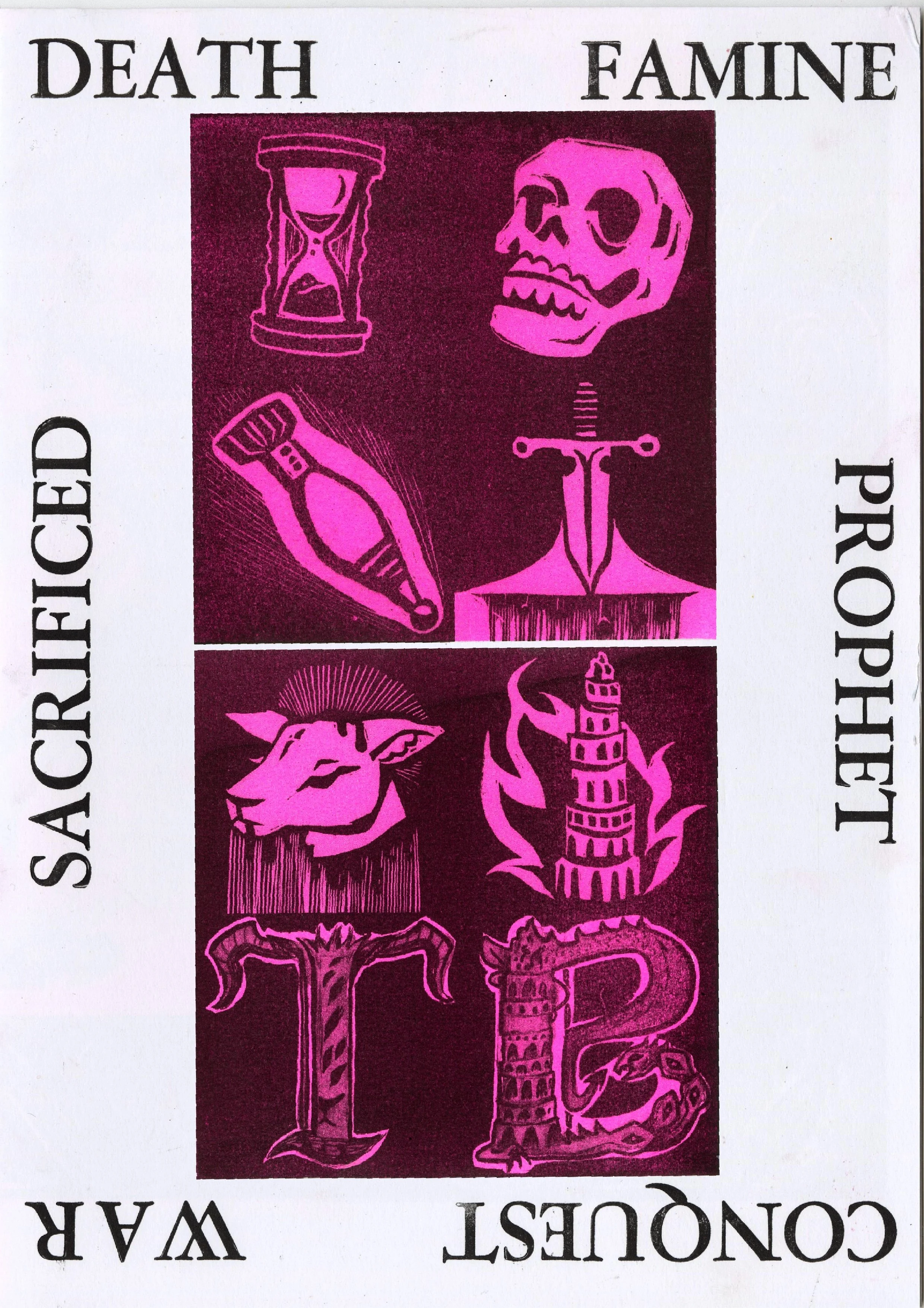 At the end of 2024 I partook in an Exhange between the schools: LUCA Sint-Lucas in Gent and St. Joost School of Art & Design in Breda. for 3 days we stayed in Gent and learned more about the A2 riso printer they have there. And then a few weeks later we would experimented with the letterpress we have in Breda. The theme that surrounded the exchange was: ‘Myths and Legends’ And I made a project surrounding the last book of the Bible; Revelation and the prophecies described in that chapter.